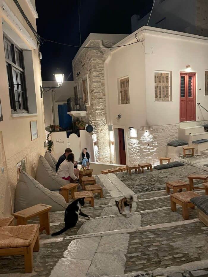 Ermoupolis is a big town with a lot to see and do, so that’s where most people stay. It’s quite walkable, and you can usually find inexpensive taxis.