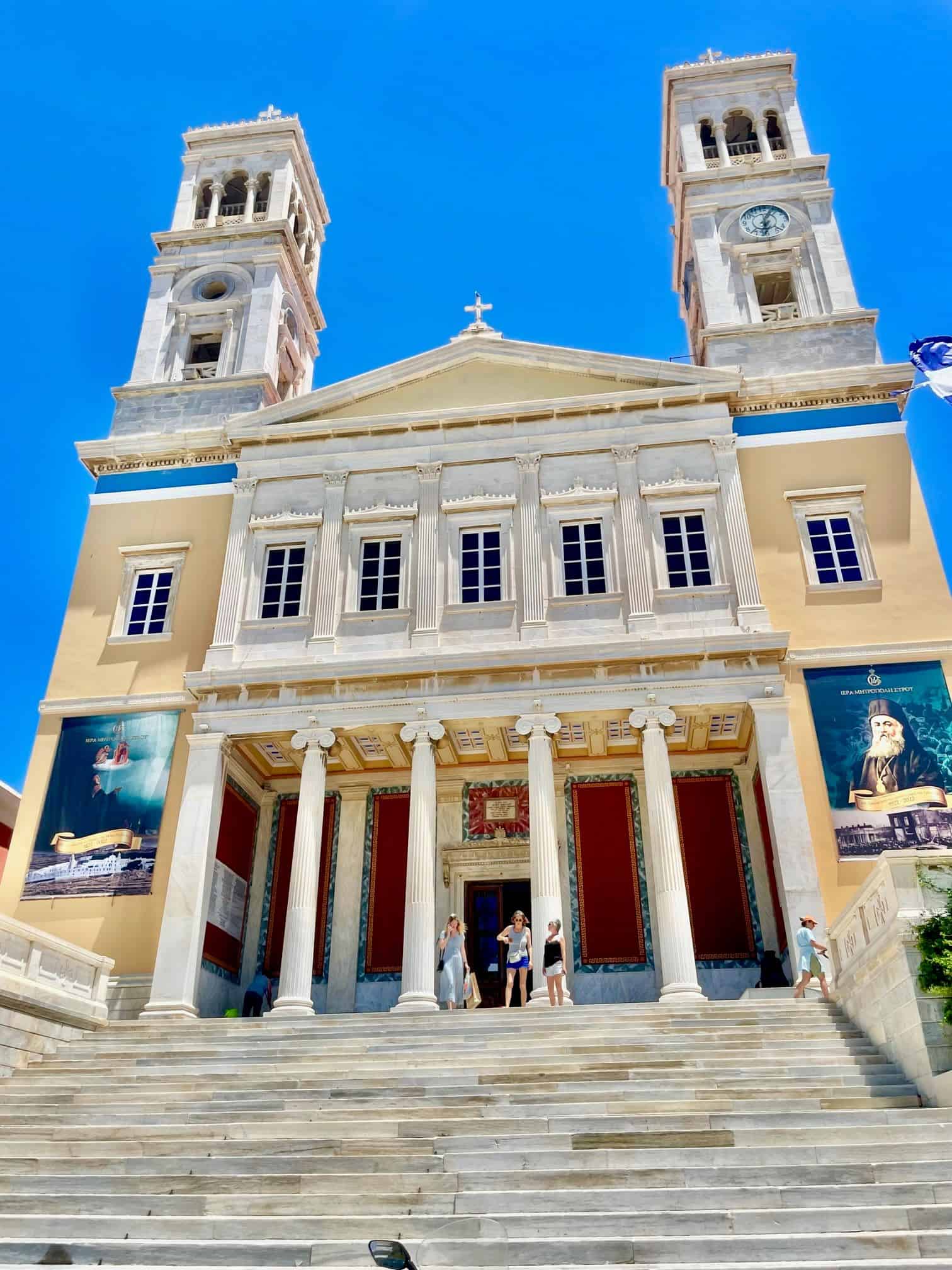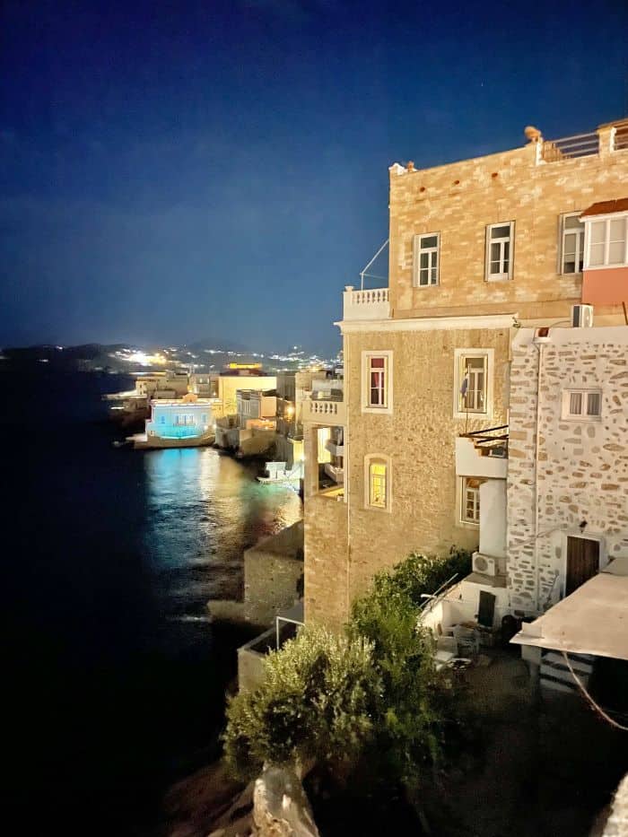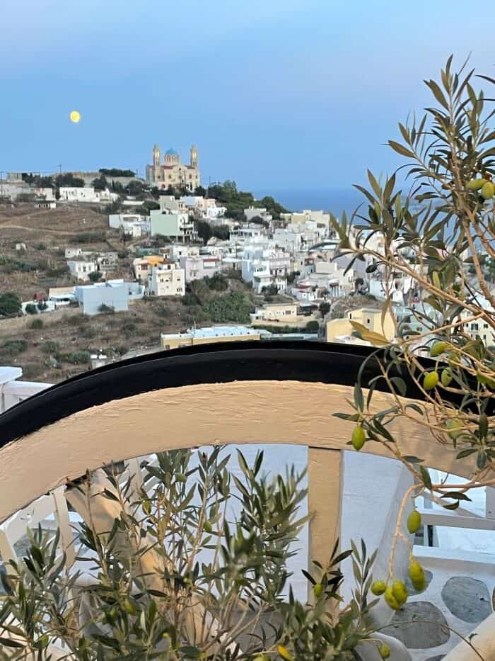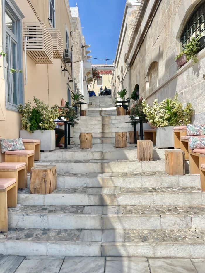 Ermoupolis is a big town with a lot to see and do, so that’s where most people stay. It’s quite walkable, and you can usually find inexpensive taxis.