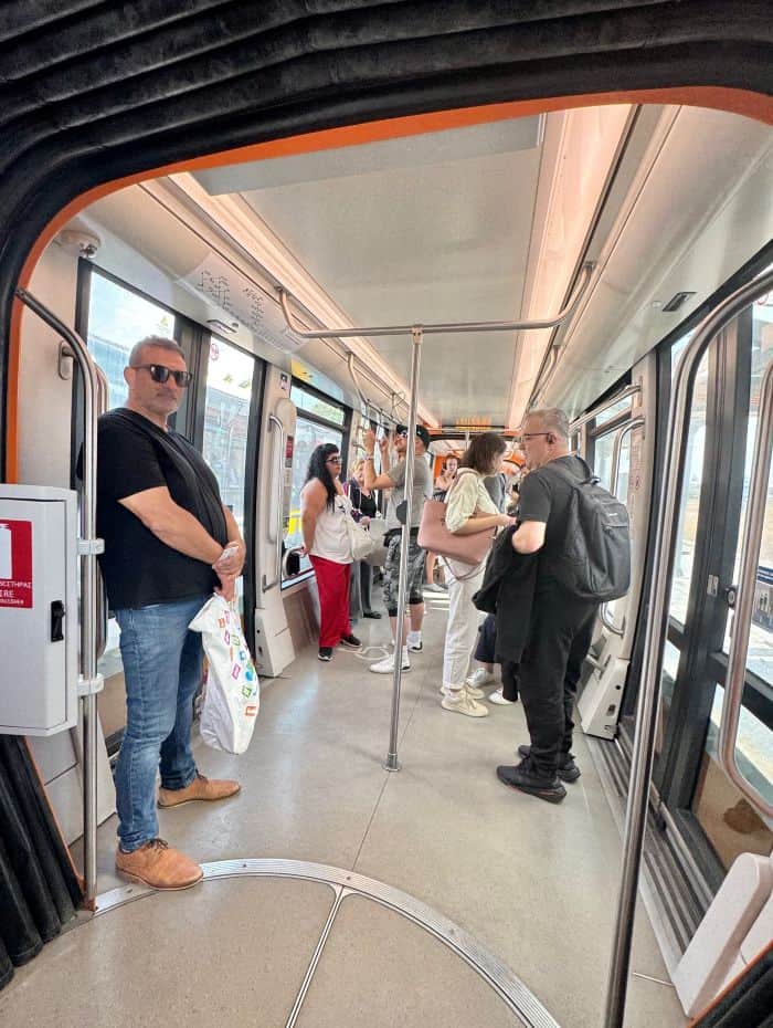 The tram system links parts of Attica’s western coast, including Faliro, Glyfada, and Voula, with central Athens.
